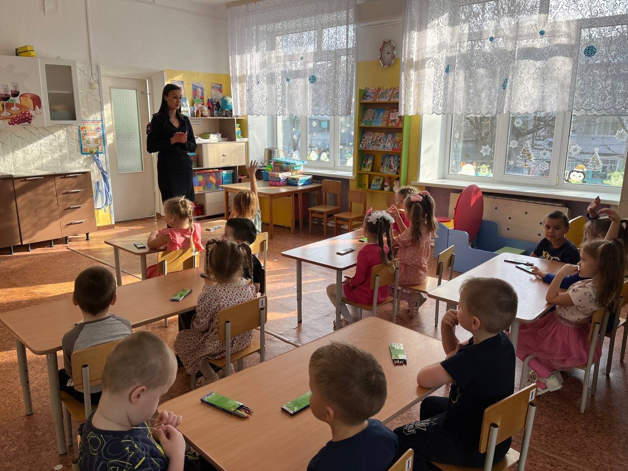 Инспектор по пропаганде БДД отделения Госавтоинспекции ОМВД России «Михайловский» старший лейтенант полиции Шилина София Валерьевна провела профилактическую беседу в старшей группе детского сада «Светлячок» с. Михайловка. Во время беседы по безопасному поведению на дороге, с ребятами рассмотрены самые трудные ситуации,которые могут возникнуть у юного пешехода, а в завершении мероприятия вместе с инспектором воспитанники детского сада раскрасили светофор 🚦, изучили для чего он предназначен,вспомнили,что означает каждый его цвет.
